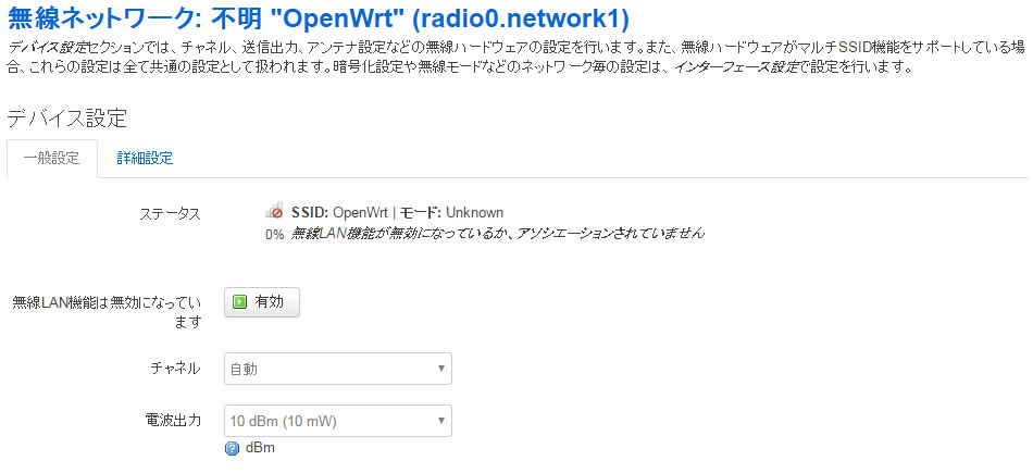 この設定は重要で電波法にて日本国内で使用する場合は10mW以下に制限されています