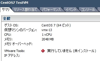 VM設定のゲストOSがCentOS 7 (64ビット)なのが確認できます