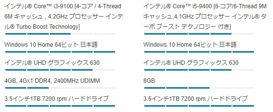 DELLの注文サイトでは以下のようにi3-9100は2400MHzとわざわざ記載していて