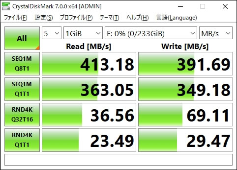 CrystalDiskMark 7.0.0fを使ってGbE経由で計測した結果